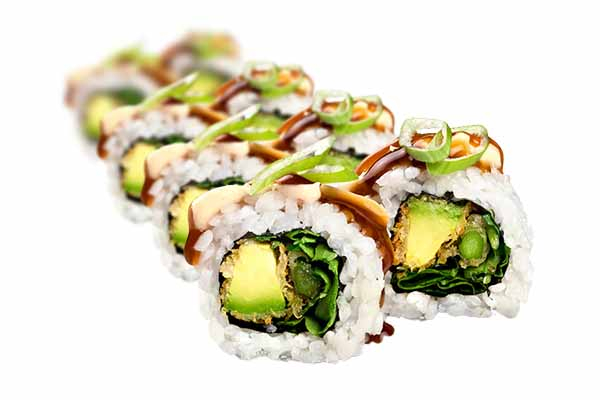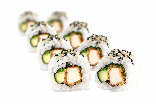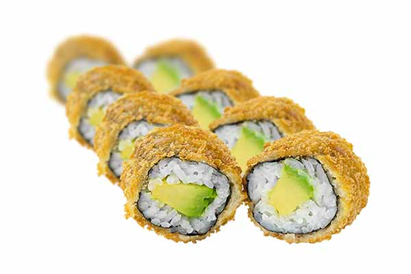 8 ks - Fitness Roll - s obalem z pažitky 8 ks - Maki Avokádo 8 ks - Maki Rukola 4 ks - Big Smažené Vegetariánské Roll sójová omáčka, nakládaný zázvor, wasabi